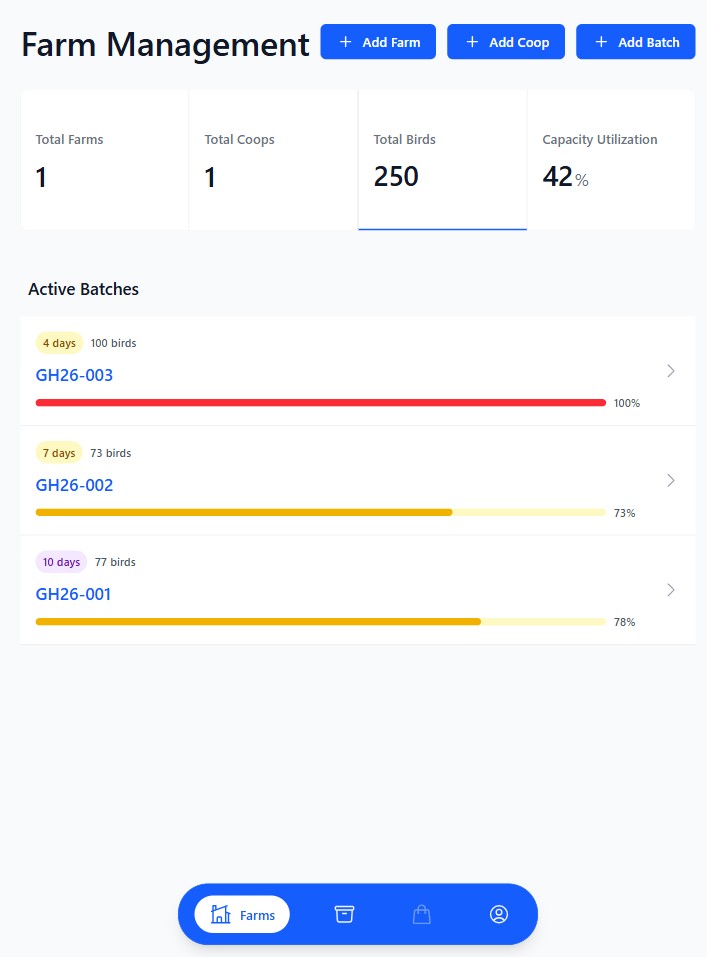 Create your Tokuku account and set up your first farm in minutes. Add your coops, flocks, and basic details like bird type, age, and feed schedule. Tokuku’s simple onboarding ensures you start tracking your poultry data effortlessly — no spreadsheets, no guesswork.